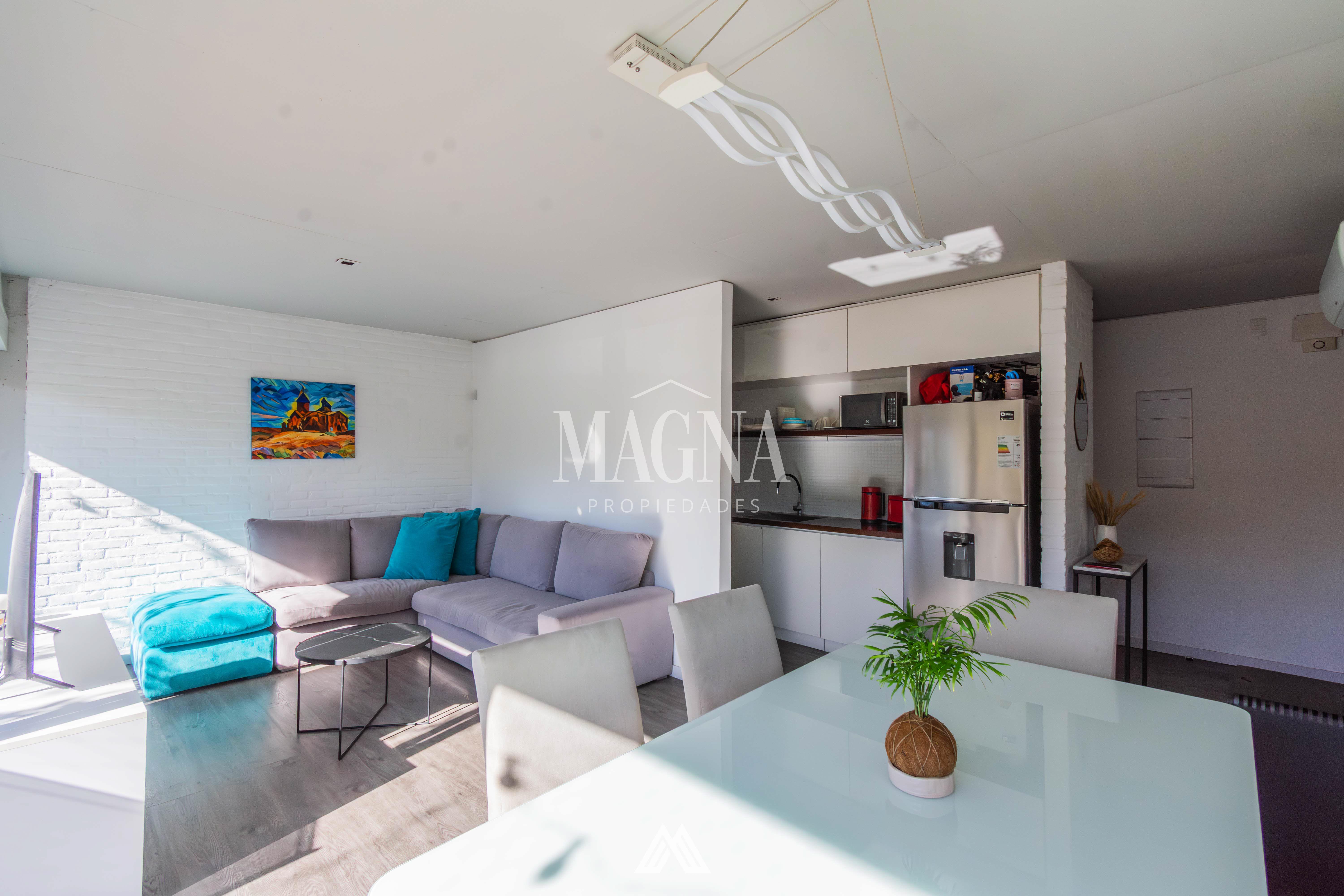 Nos recibe un luminoso living-comedor al frente, con estufa de alto rendimiento, aire acondicionado y salida a cómoda terraza. Se integra de forma semi abierta a la cocina con terminaciones de primera calidad; equipada con horno, anafe y campana. Desde allí se accede a la terraza lavadero, con conexión para lavarropas y secarropas.